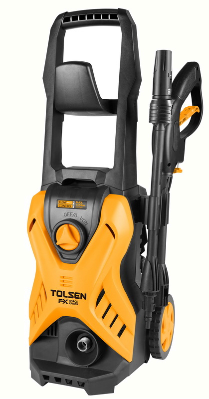 Aparatul de spălat cu presiune Tolsen este dotat cu un motor PwrBlastX performant, ce garantează o performanță superioară și o eficiență ridicată in curățarea rapidă și eficientă a suprafețelor murdare de la mașini, mobilier de grădină, trotuare și alte suprafețe similare. Acesta are o putere de intrare de 1700W și o tensiune nominală de 230V, frecvența de 50Hz și o presiune nominală de 90Bar (1300psi) și o presiune maximă de 135Bar (2000psi). Acesta are o rată de curgere de 5L/min și funcția de aspirație automată. Aparatul este omologat CE și este prevăzut cu protecție la temperatură și la presiune pentru siguranța utilizatorului. Acesta vine cu un pistol de spălare cu duză reglabilă, un furtun de presiune inaltă de 7 metri, o sticlă pentru săpun, un adaptor pentru robinet, un conector de furtun și un ac de curățare. Acest aparat de spălat cu presiune este ușor de utilizat și este perfect pentru utilizarea acasă sau la birou. Acest aparat este livrat cu un cablu de alimentare VDE aprobat de 5 metri și este ambalat intr-o cutie colorată pentru depozitare și transport ușor.